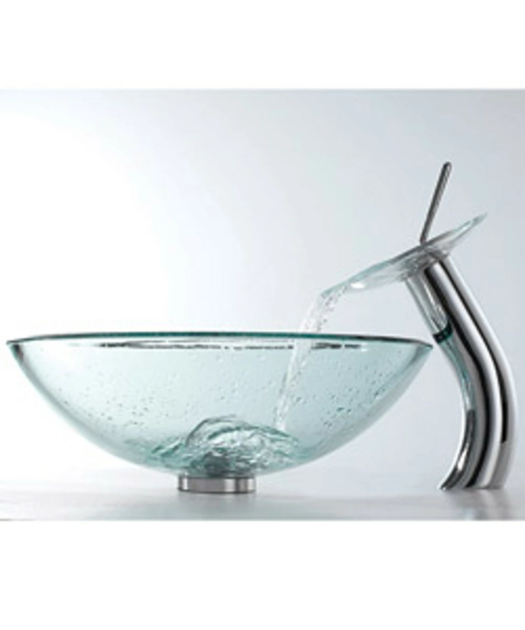 A touch of elegance. The Waterfall faucet features eye-catching design fused with unsurpassed quality.Â