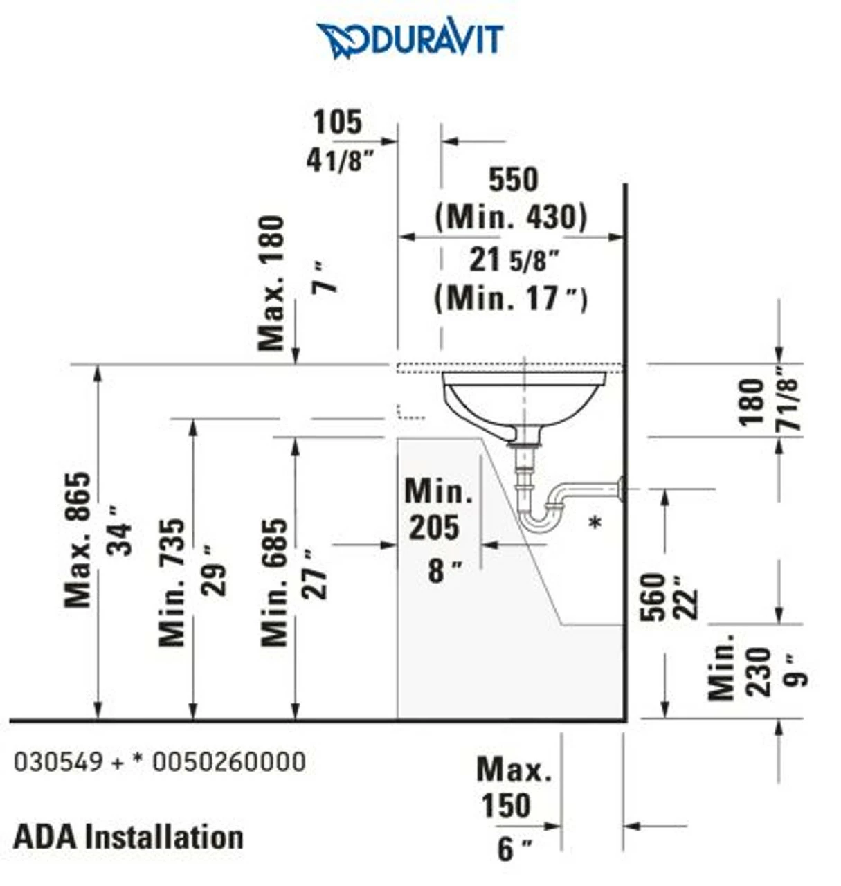- Overall Height: 7-1/8″ (top to bottom of sink)