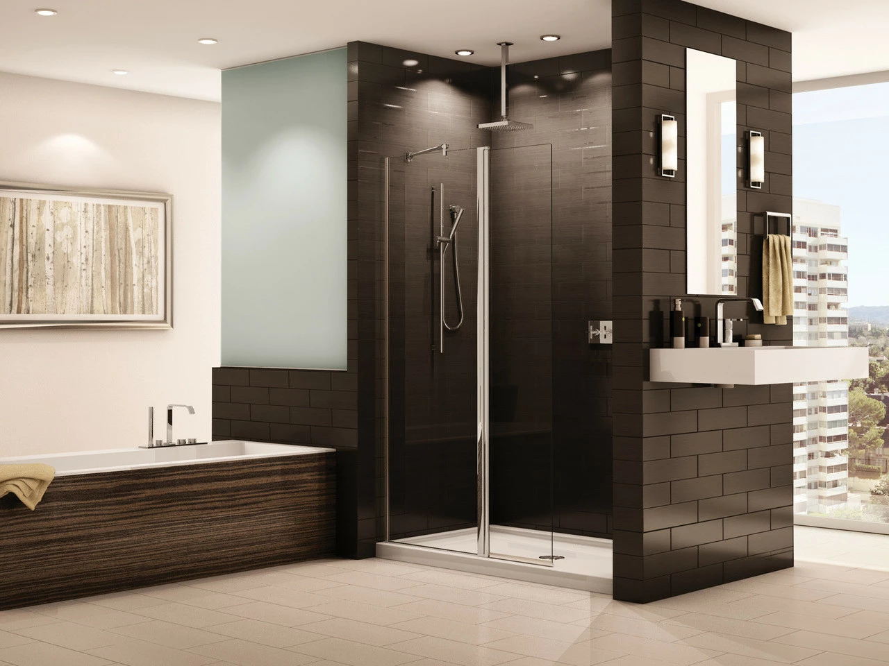 - Comes with one fixed panel (24″) and one door panel (15″)