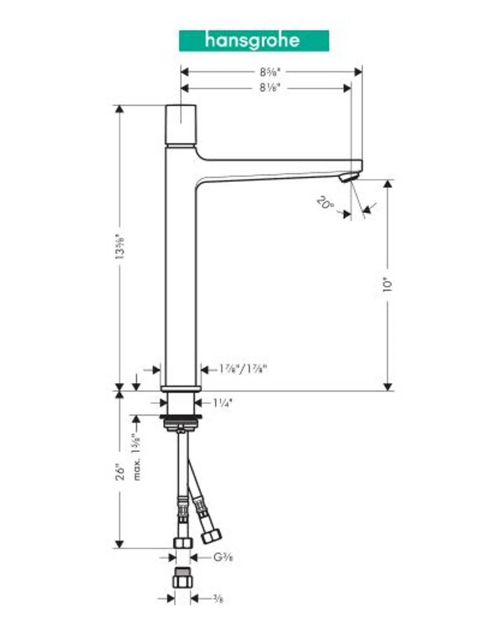 - Height: 13-5/8″ (deck to top of faucet)