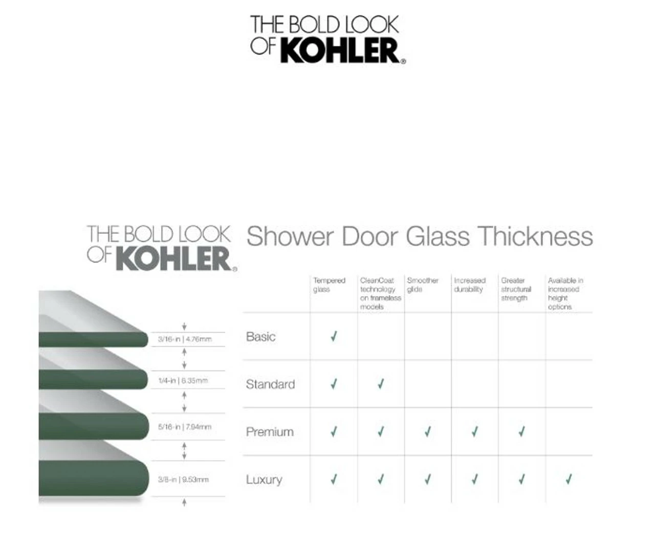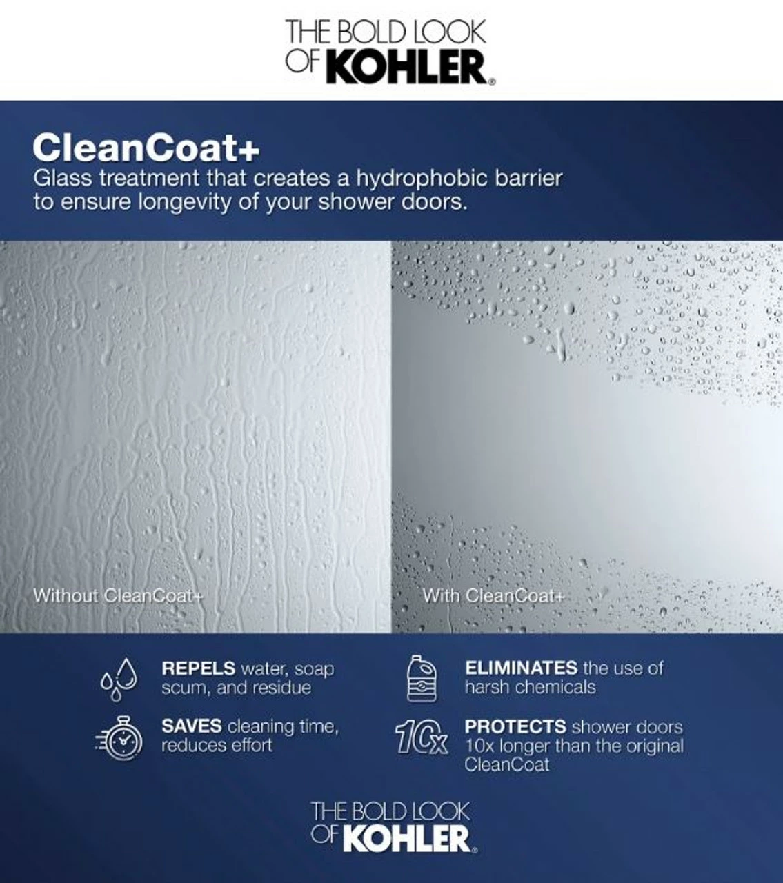 - CleanCoat®: Glass treatment on shower doors repels water for improved ease of cleaning