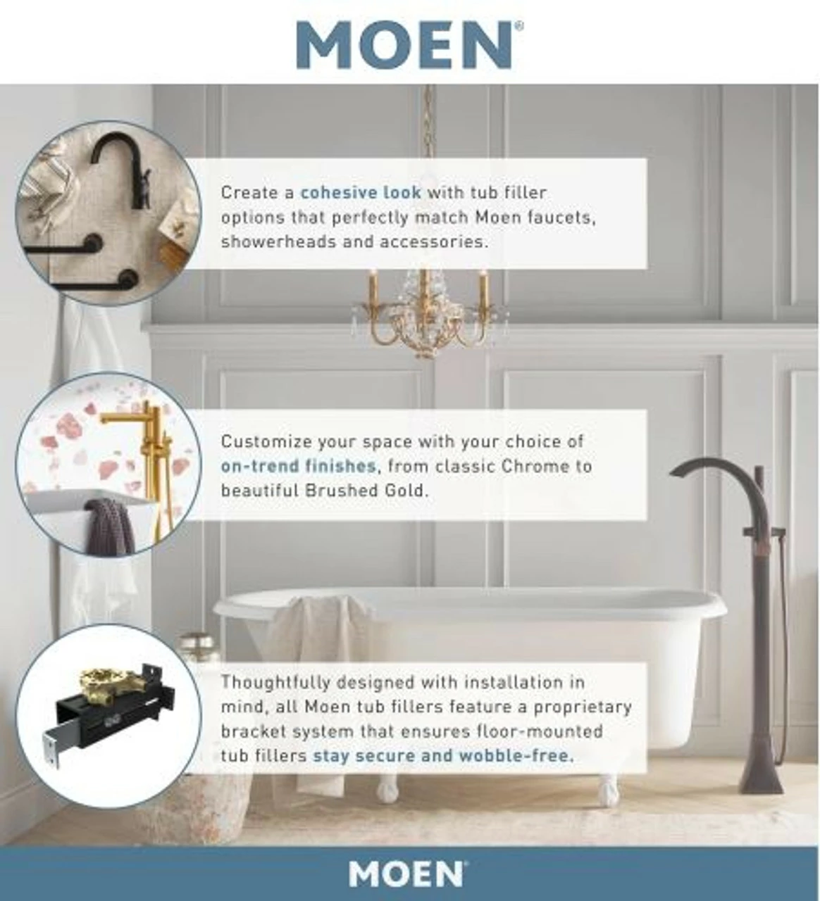 - Built on the Moen M-PACT common valve system, allowing you to update the faucet style in the future without replacing any plumbing