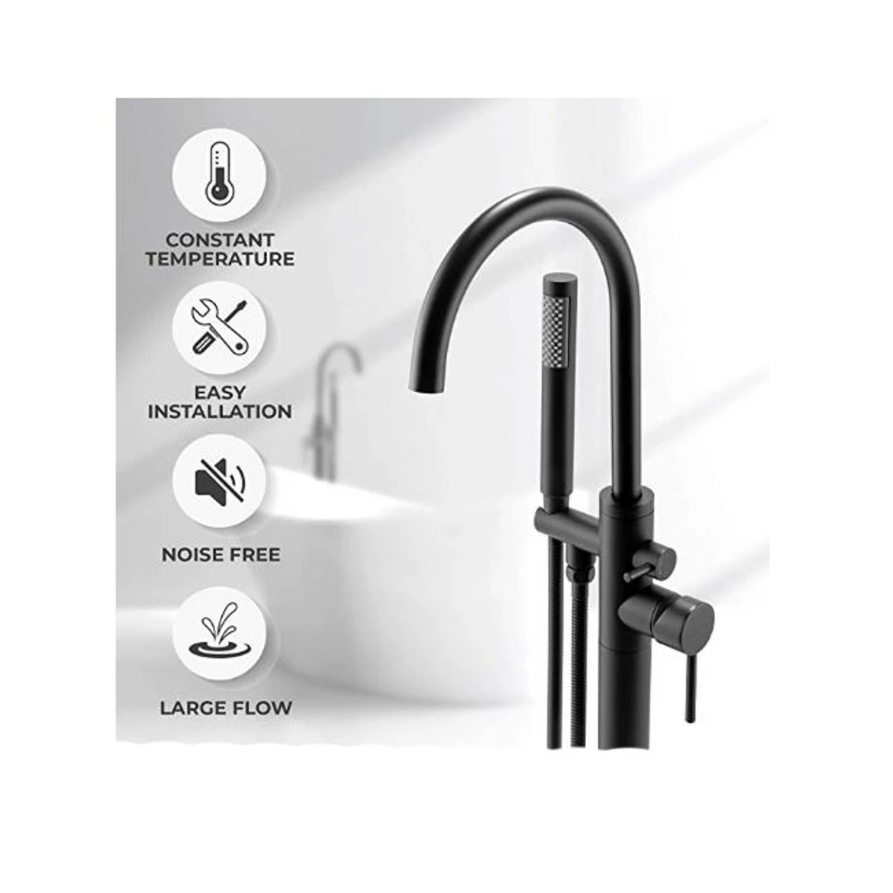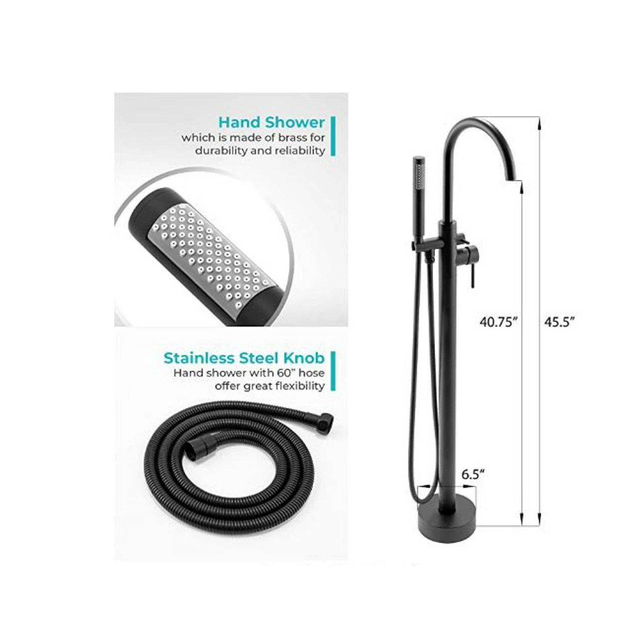 46″ Freestanding Floor Mounted Bath Tub Filler Faucet with Handshower Matt Black